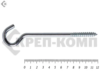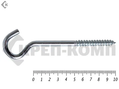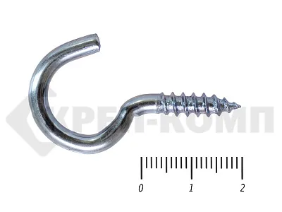 Шуруп-полукольцо – это прочный металлический крепеж с крюкообразным наконечником. Изделие используется для подвешивания декоративных элементов, навесного оборудования, вспомогательных приспособлений. С его помощью удерживаются фиксирующие ленты и канаты.